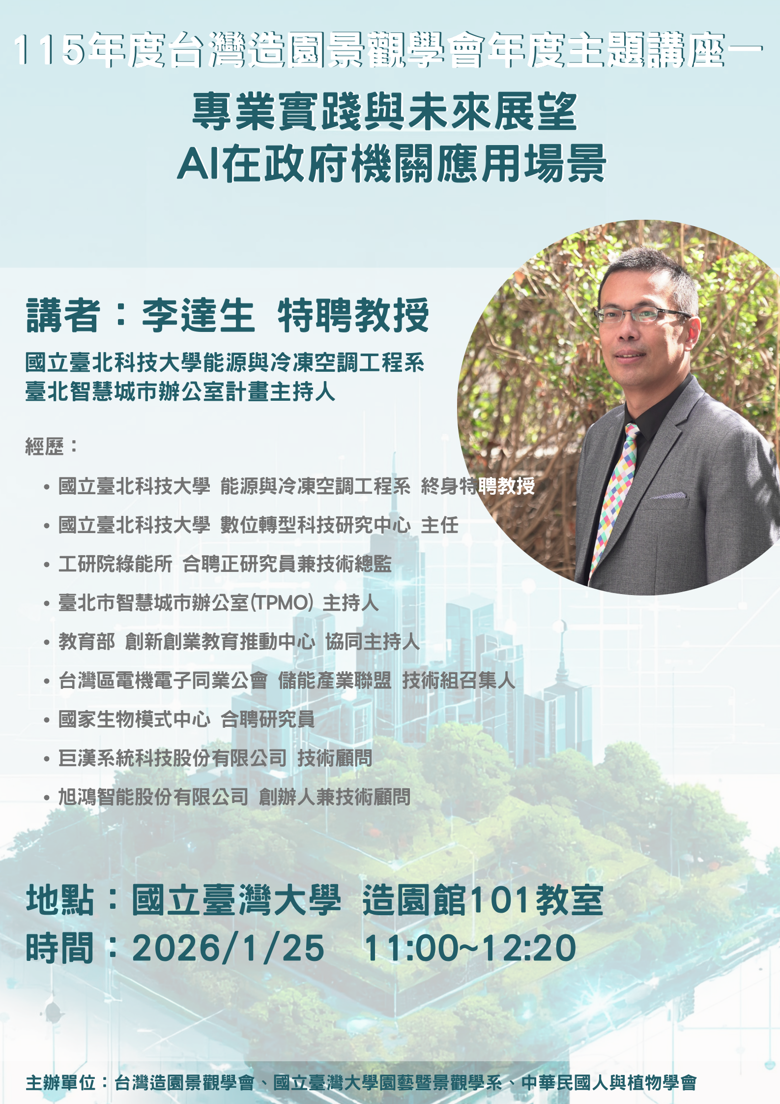 台灣造園景觀學會115年會員大會暨「AI × Landscape:學術研究與專業實踐」主題講座