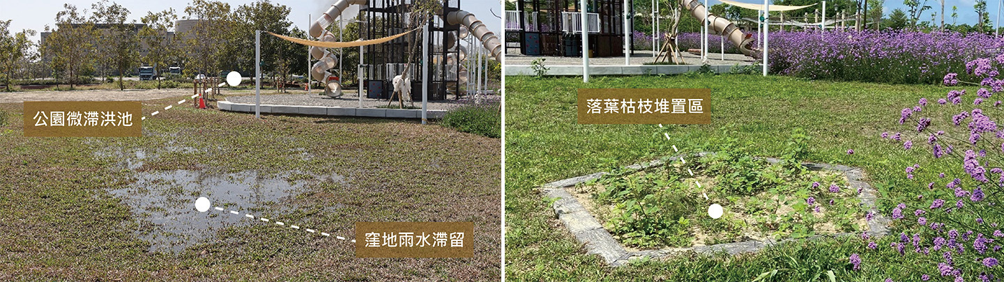 (左)圖15 排水雨水滯留,製造微滯洪池概念