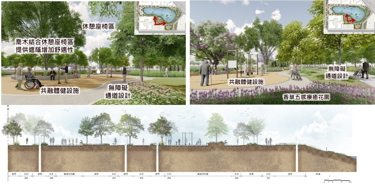 圖6 療癒花園結合交流休憩區,並利用植栽提供五感體驗強化認知 (圖片來源:林同棪工程顧問公司)