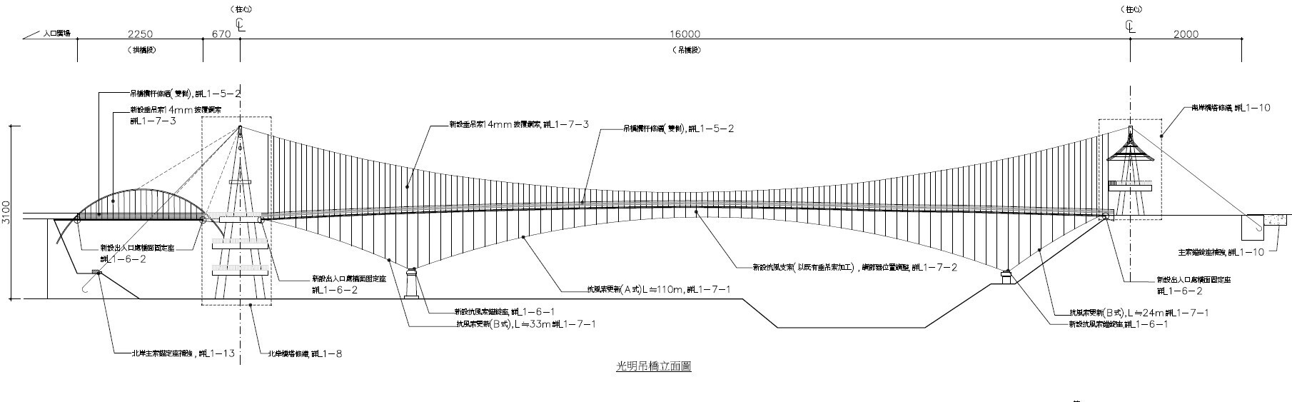 1. 吊橋安全為第一考量,抗風索、垂吊索等構件因長期使用多處老化損壞,影響吊橋定性,全面進行更換。