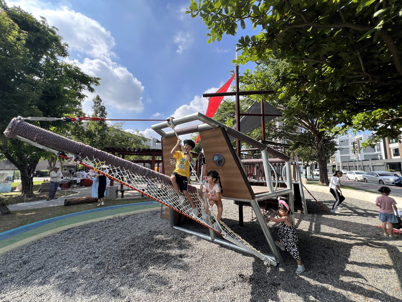 l 善用大樹林蔭,營造遮陰良好的樹下遊戲區,提供全天候舒適使用體驗。