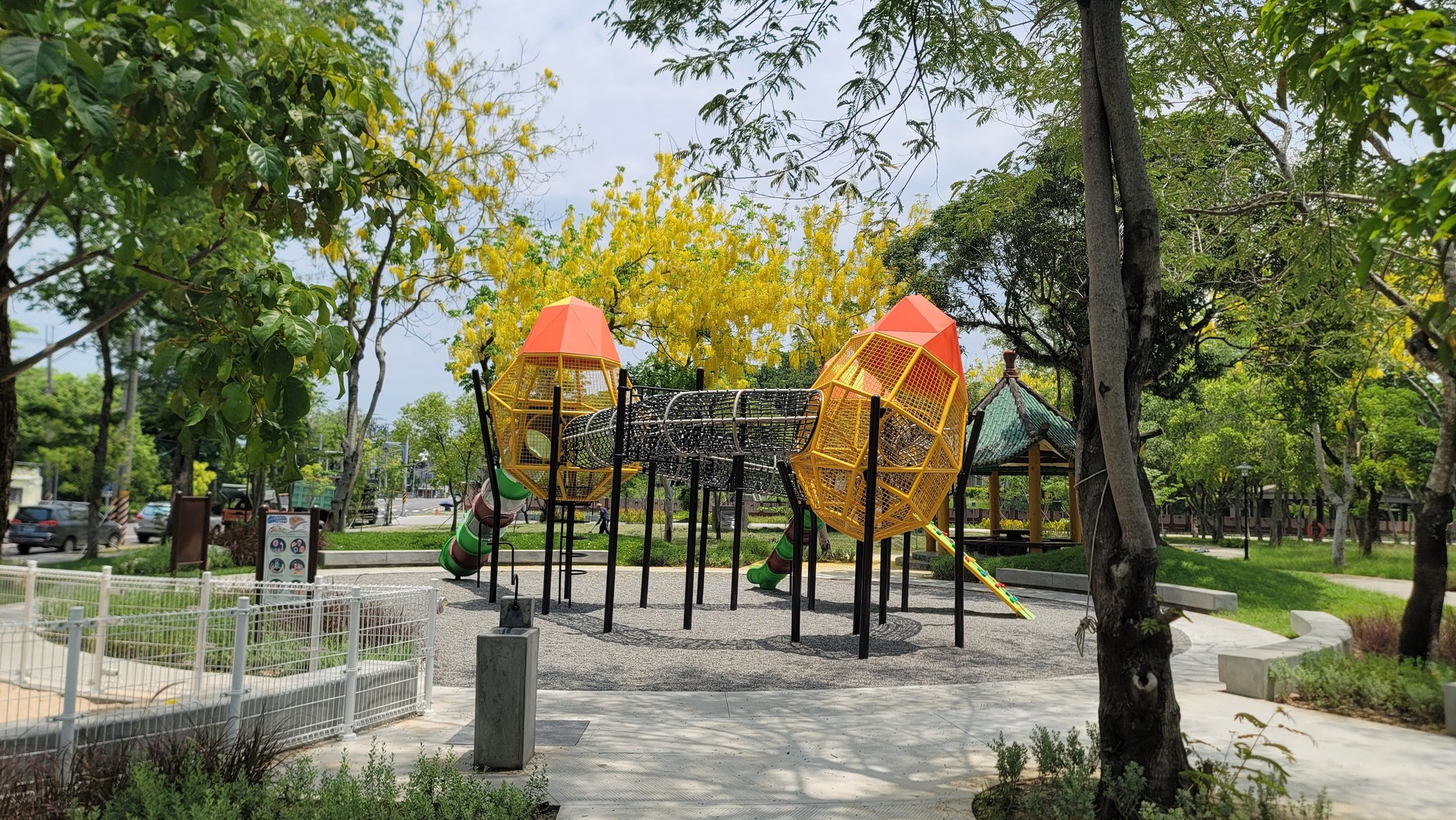 為提供使用者最舒適的環境,本團隊盡可能的保留現場喬木作為遮蔭,並調查個別樹種的特性可提供使用者互動之體驗。(例如芒果樹葉搓揉會有淡淡芒果香,孩童除攀樹摘果外,亦可以瞄準擊落樹上果實作為遊戲行為。)