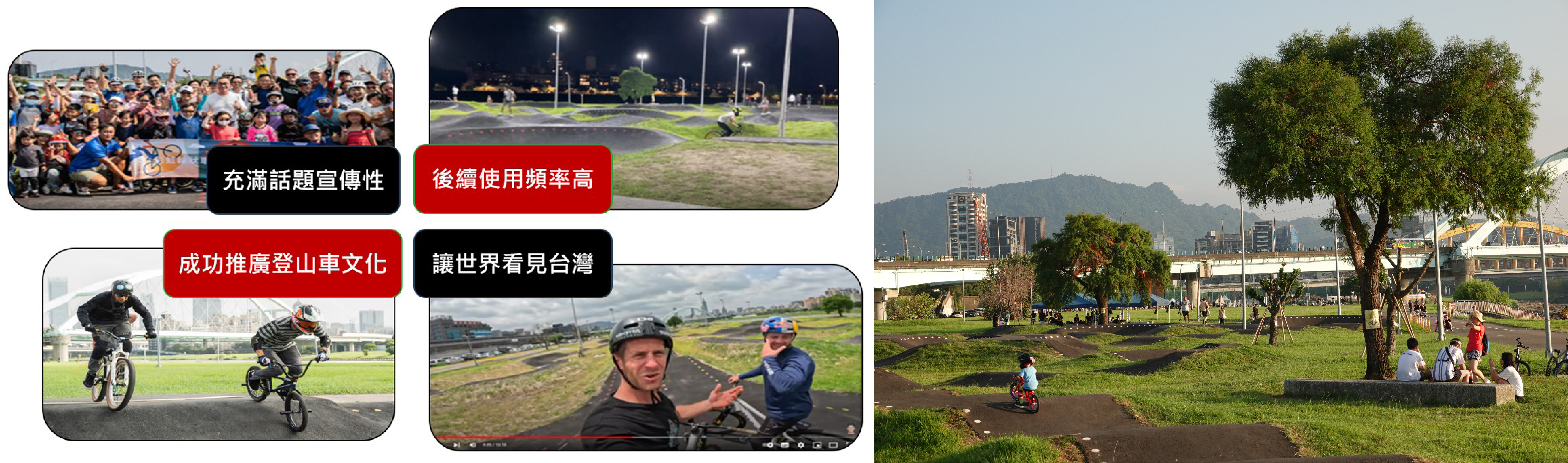 於設計階段細心聆聽民間專業協會的專業與知識傳遞,且配合勇於嘗試進步之業主,建立起一套良好的公領域Pump Track設計及施作標準,有助於全台北各區域Pump Track公園,甚至作為全台Pump Track發展公園之典範。
