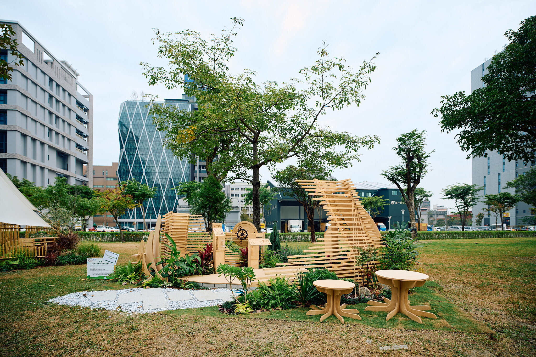 以可食植物為基底,竹構象徵農業循環,搭配具療癒特質的植栽,透過嗅覺、觸覺與視覺交織,形塑溫柔且具感官層次的都市綠意空間。