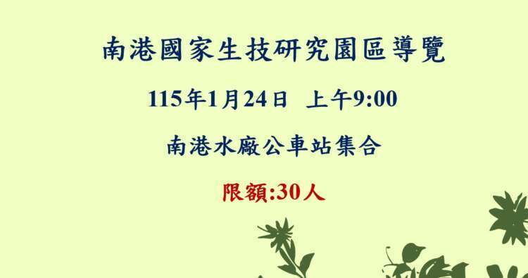 【景觀學會_每周NEWS分享】115/1/24 南港國家生技研究園區|例假日步道導覽活動