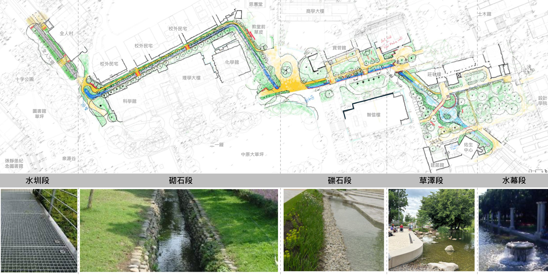 與一般水利的規劃路徑不同,從2023年~迄今由桃園水利局、連生顧問公司與中原大學校內各系所合作討論,展開研究、競圖、專家座談會及鏈結大學社會責任USR「桃園埤圳水文化環境的共生發展與國際合作」,藉此整合校內各處室之相關圖資,建立規劃研究的基礎,也透過設計課程操作參與式設計,擴大讓校園使用者認識水圳,得到大量回饋意見。