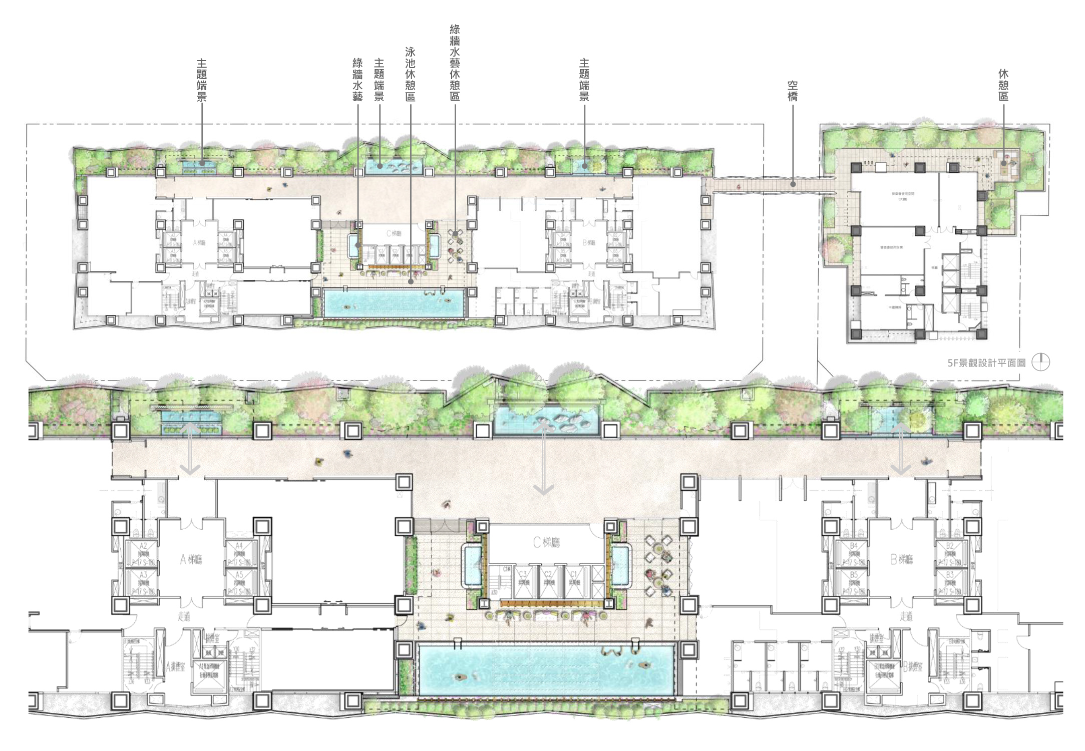 如今透過連續的人行綠廊,垂直露臺的多樣性多層次植栽;綠屋頂創造生態跳島,在繁華喧鬧的城市之中,於有限的空間裡,創造豐富的綠意與自然,拉近城市與自然的距離。