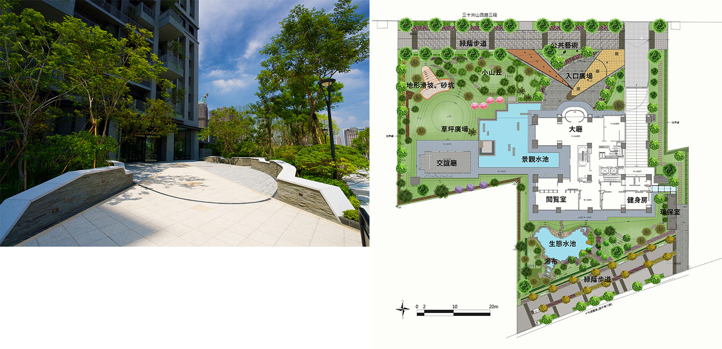 (右)圖3 戶外景觀平面配置圖 (圖片來源:新業建設)