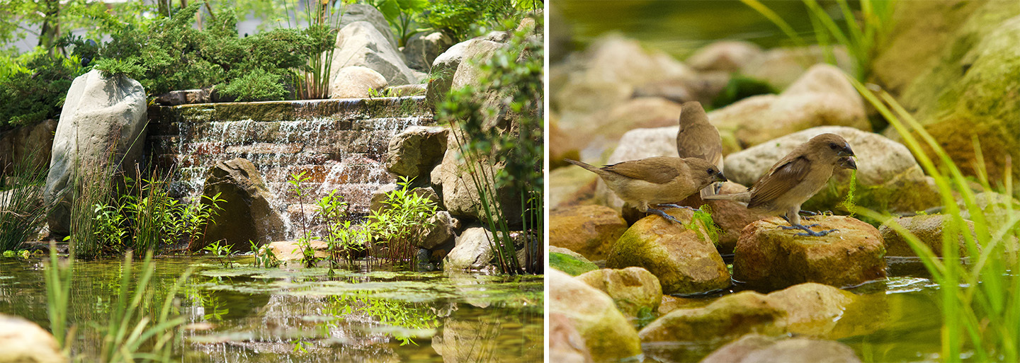 圖10 瀑布以石英石塊堆砌而成,呈現自然質樸的景觀效果並強化生態意象 (圖片來源:新業建設)