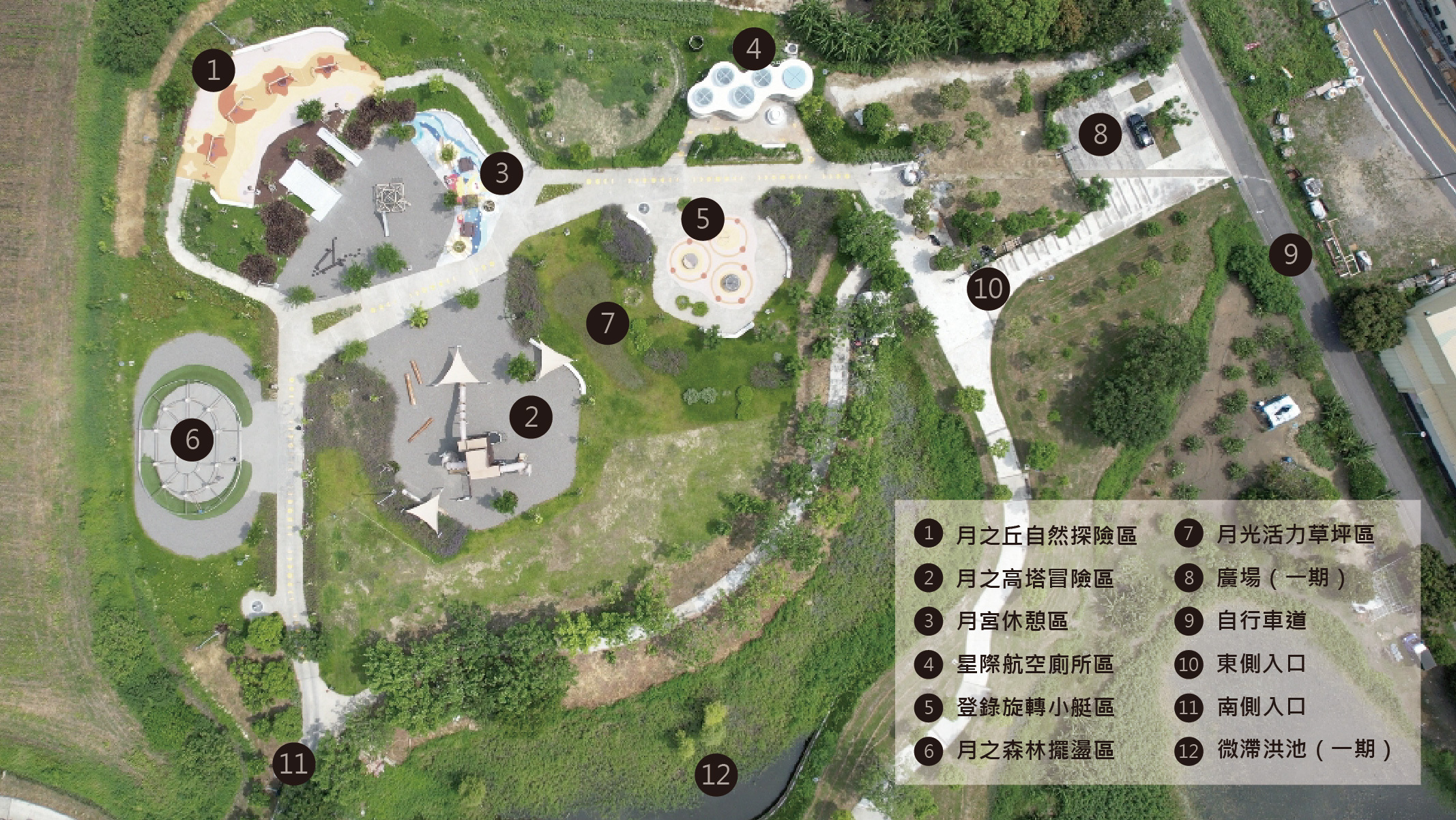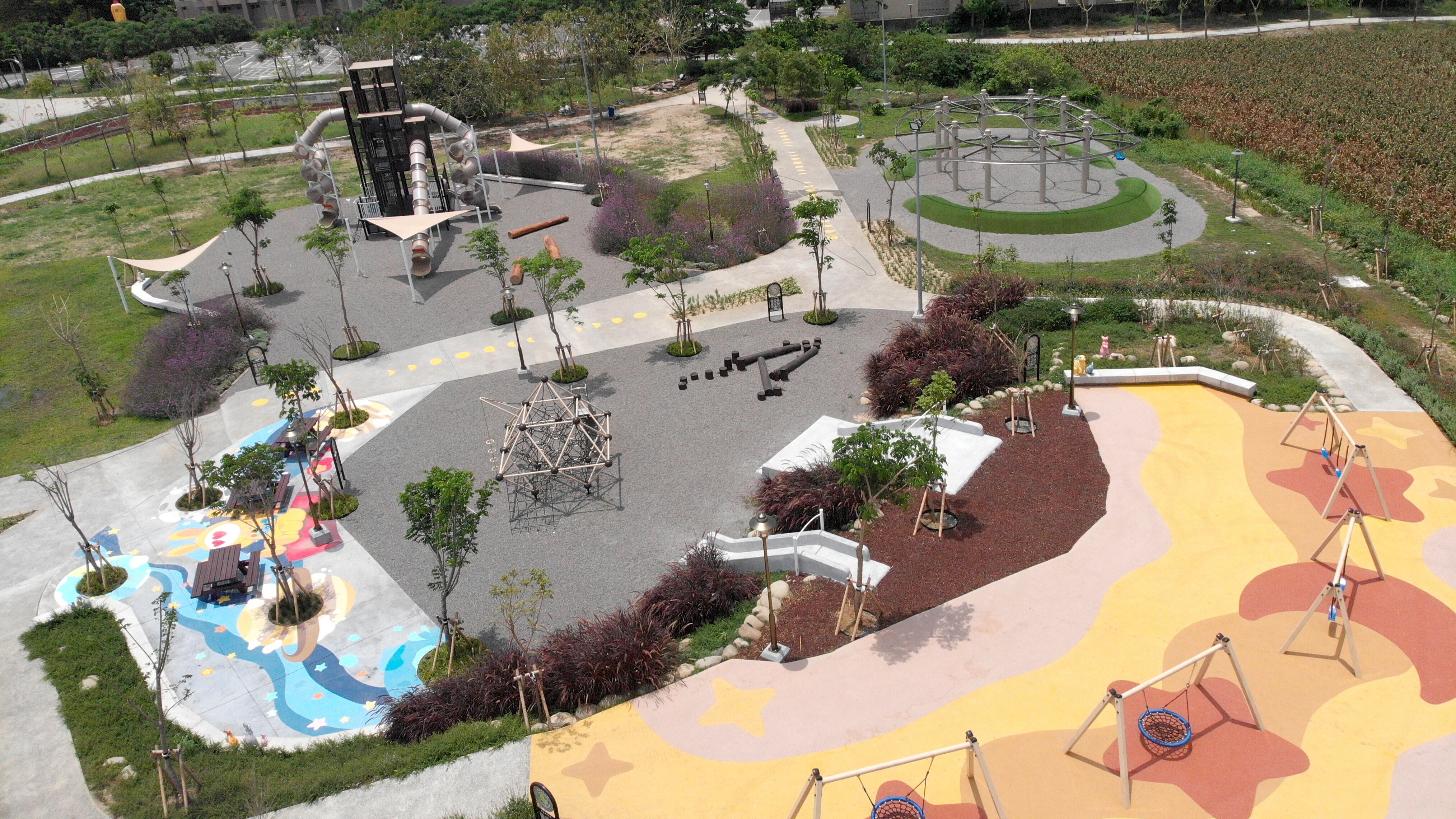 - 全區規劃無障礙動線,並依不同類型遊戲設施及遊戲強度設定功能分區