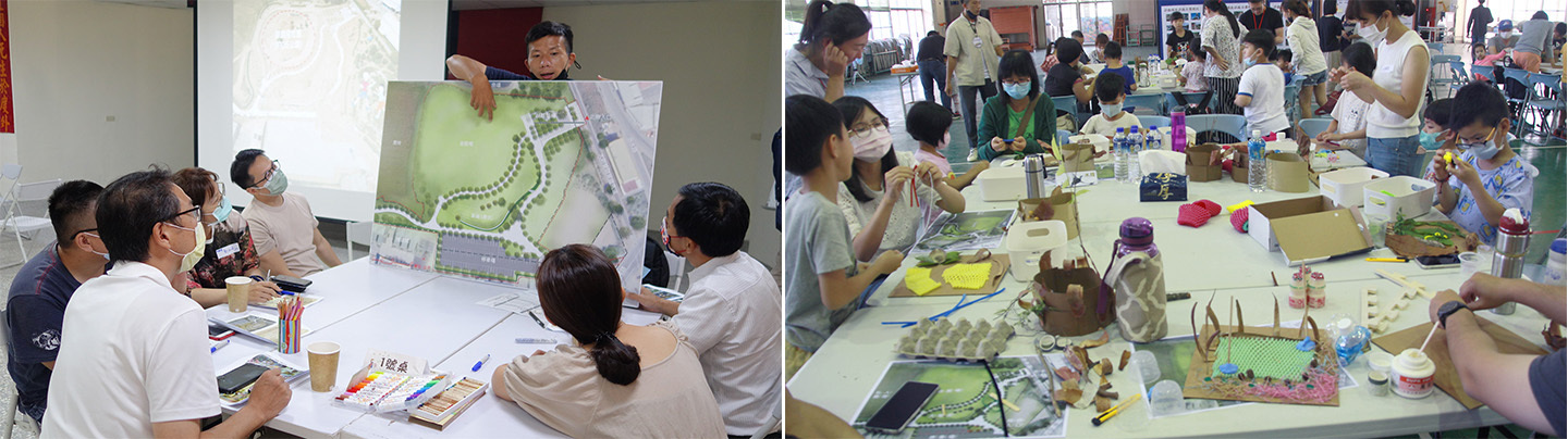 (右)圖3 兒童參與遊戲場工作坊:設計自己的迷你小小人遊戲場!(互動式引導)