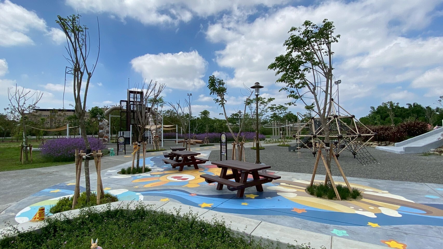 提供全齡使用者休息空間,視野通透並有足量遮蔭與座椅。