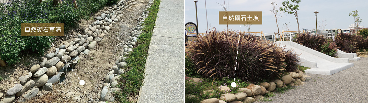 圖14 使用自然手法與材料營造場域(如:枯木、礫石、透水材…等等)