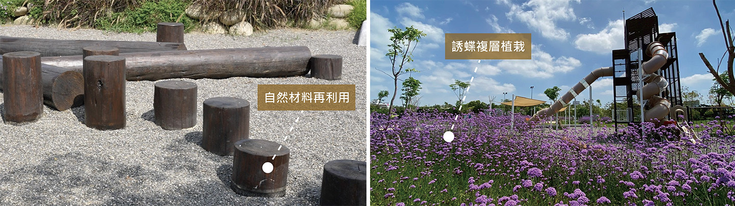 (左)圖17 自然材料再利用-使用枯木設計遊具