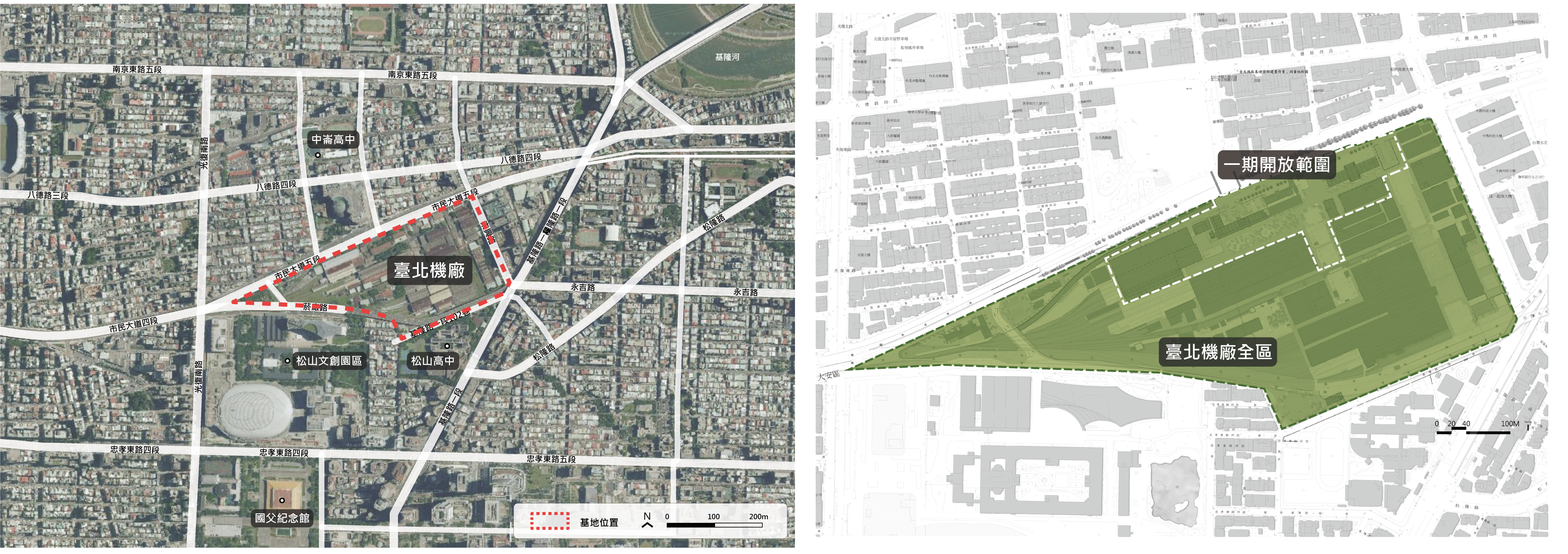 圖2 臺北機廠位置與本案基地範圍 (圖片來源:中冶拍攝)