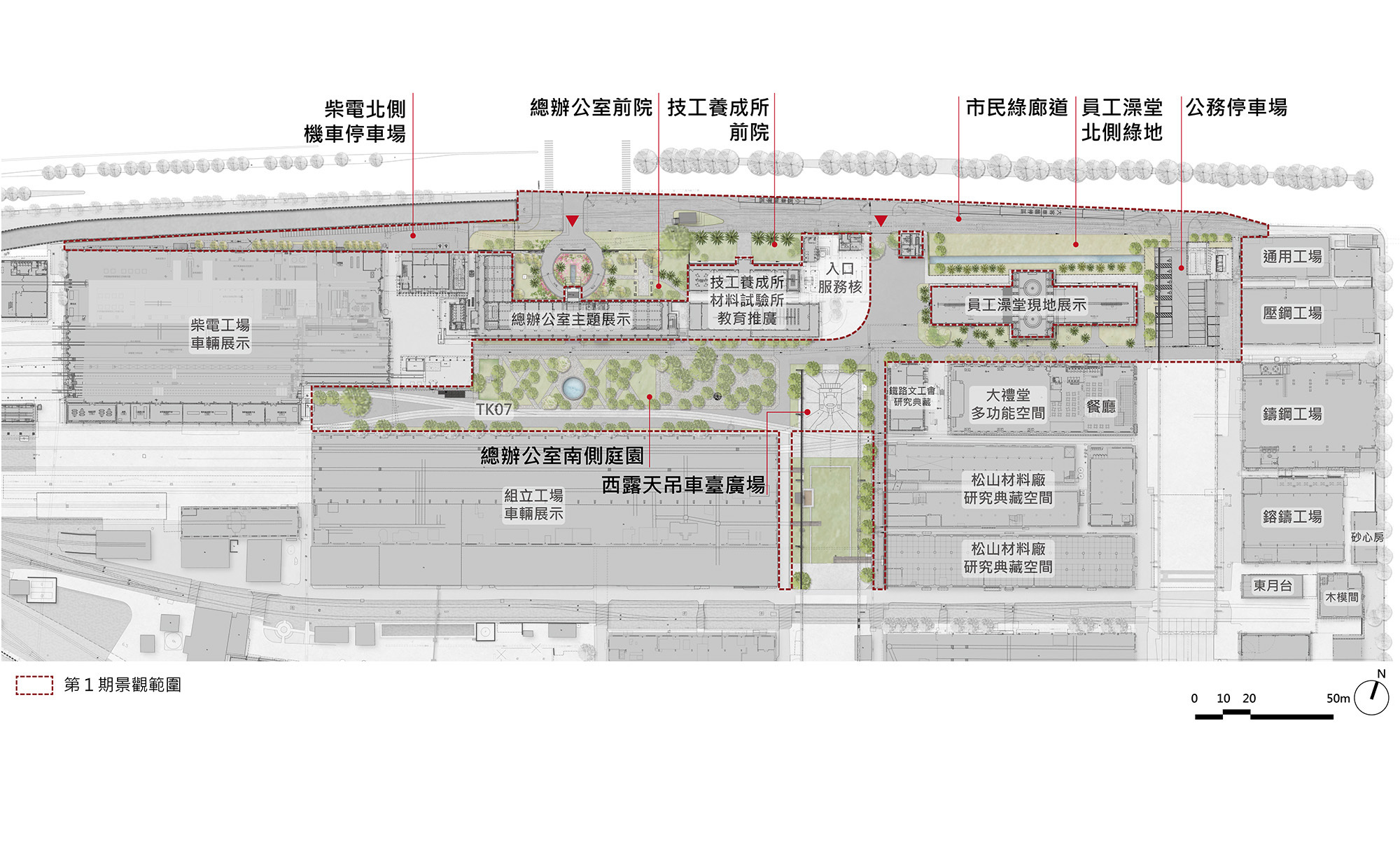 圖6 第一期開放範圍平面圖 (圖片來源:中冶繪製)