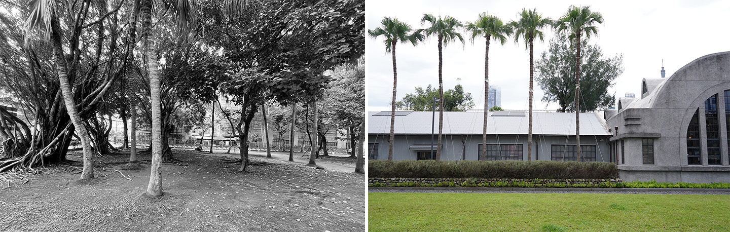 植物在景觀設計上是重要元素 ,本次戸外的文資景觀修復除了尋找記錄及老照片外,也用訪談方式從記憶找回失落的景觀空間。