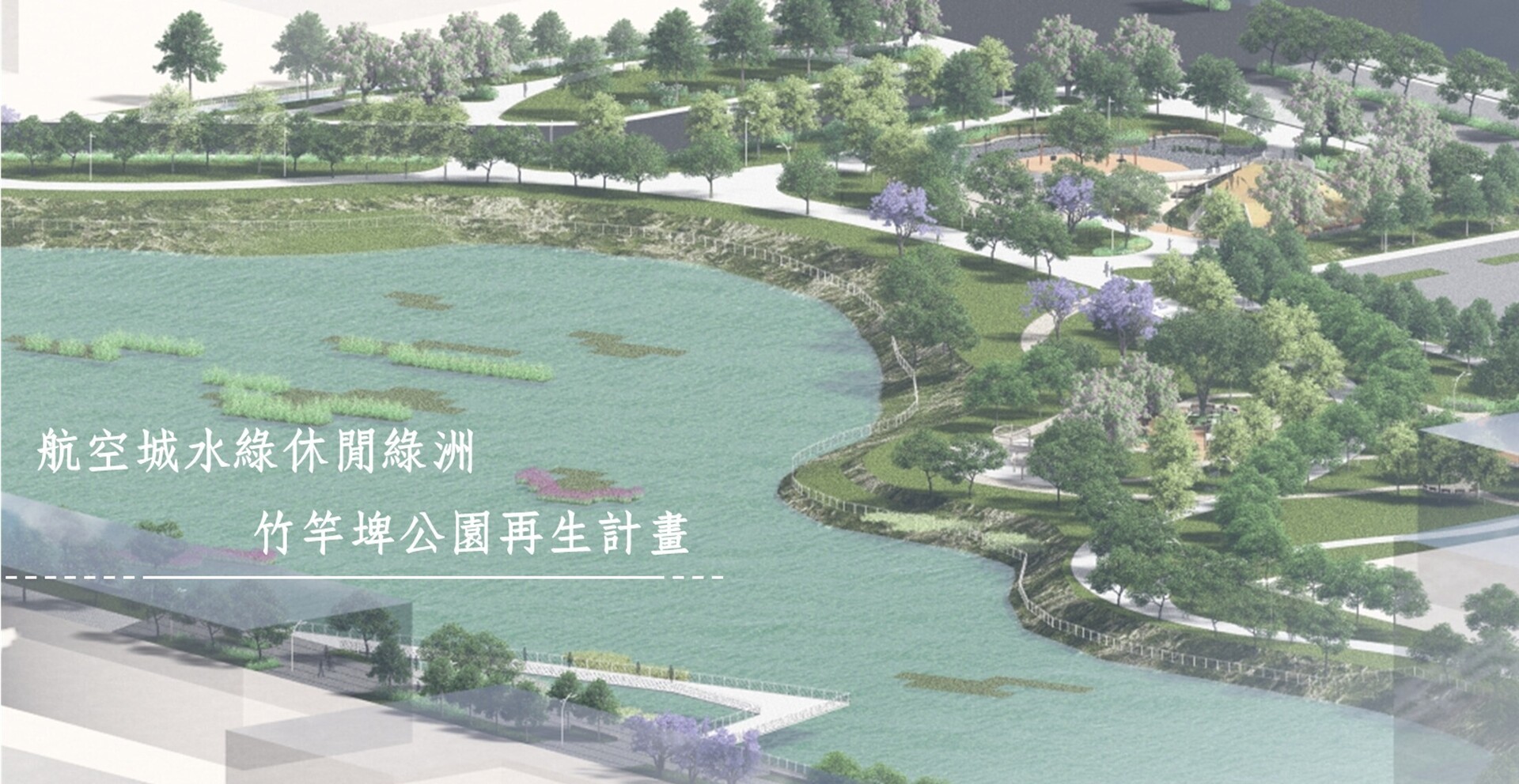 本計畫位於航空城計畫範圍內C1分標之公35公園(竹竿埤公園),基地原為既有埤塘竹竿埤,經工程規劃後轉化為具都市滯洪功能之水域空間,兼顧生態涵養與防洪調適,提供居民休憩外,也成為都市重要的水綠基盤。