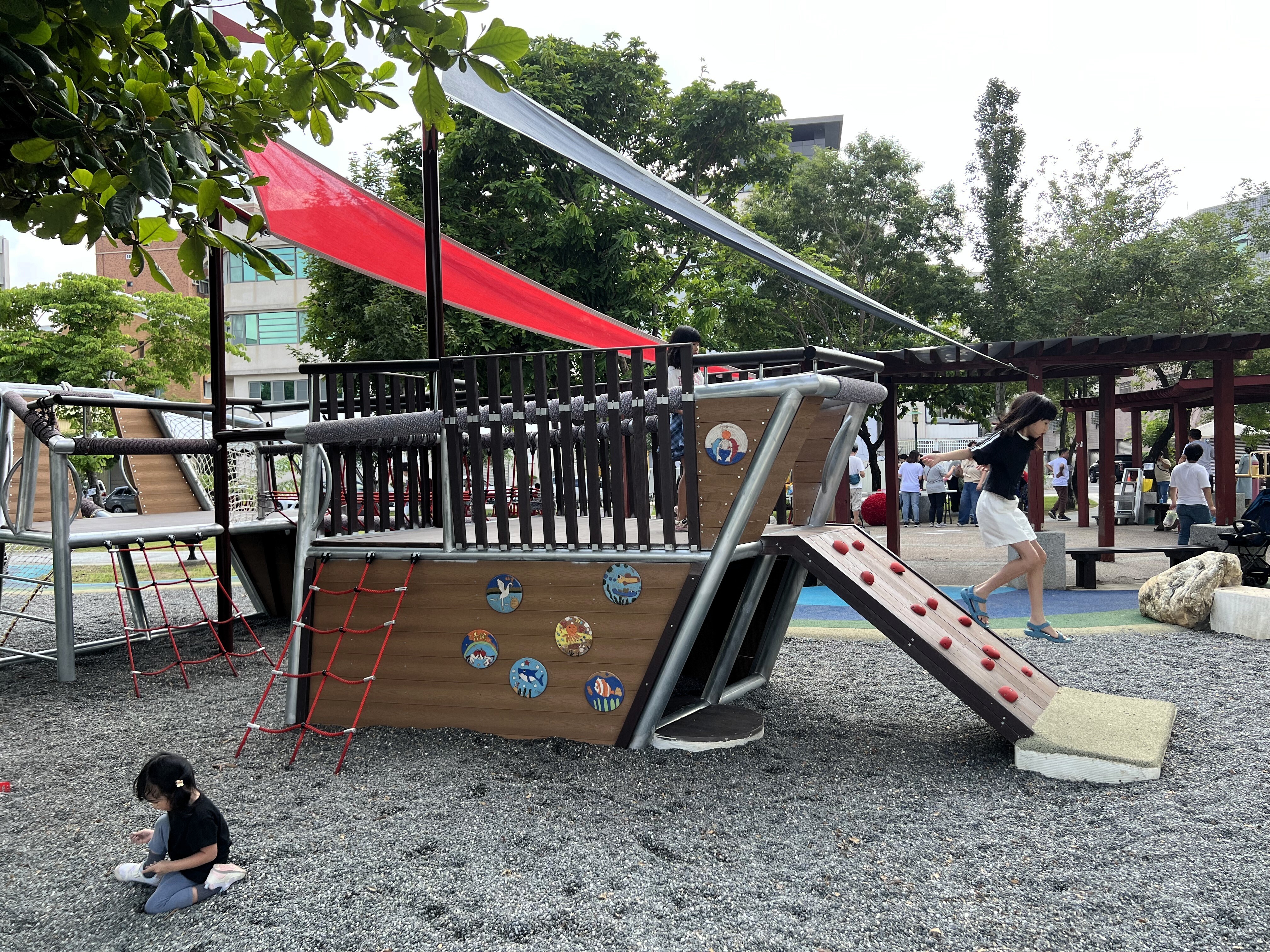 l 以「乘船拓荒、先民勇於探索的精神」為核心,規劃大型海盜船造型遊具。