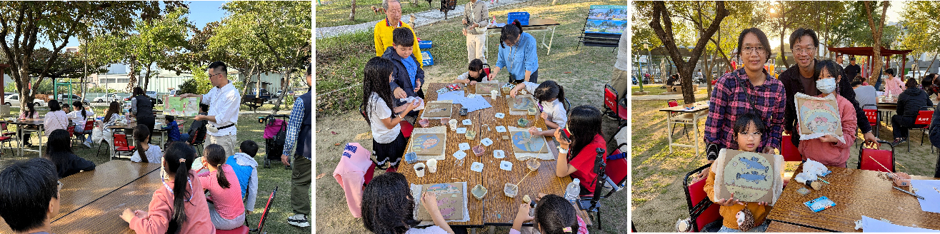 圖8 以童書繪本啟發創意,親子共同彩繪陶板並合影留念。