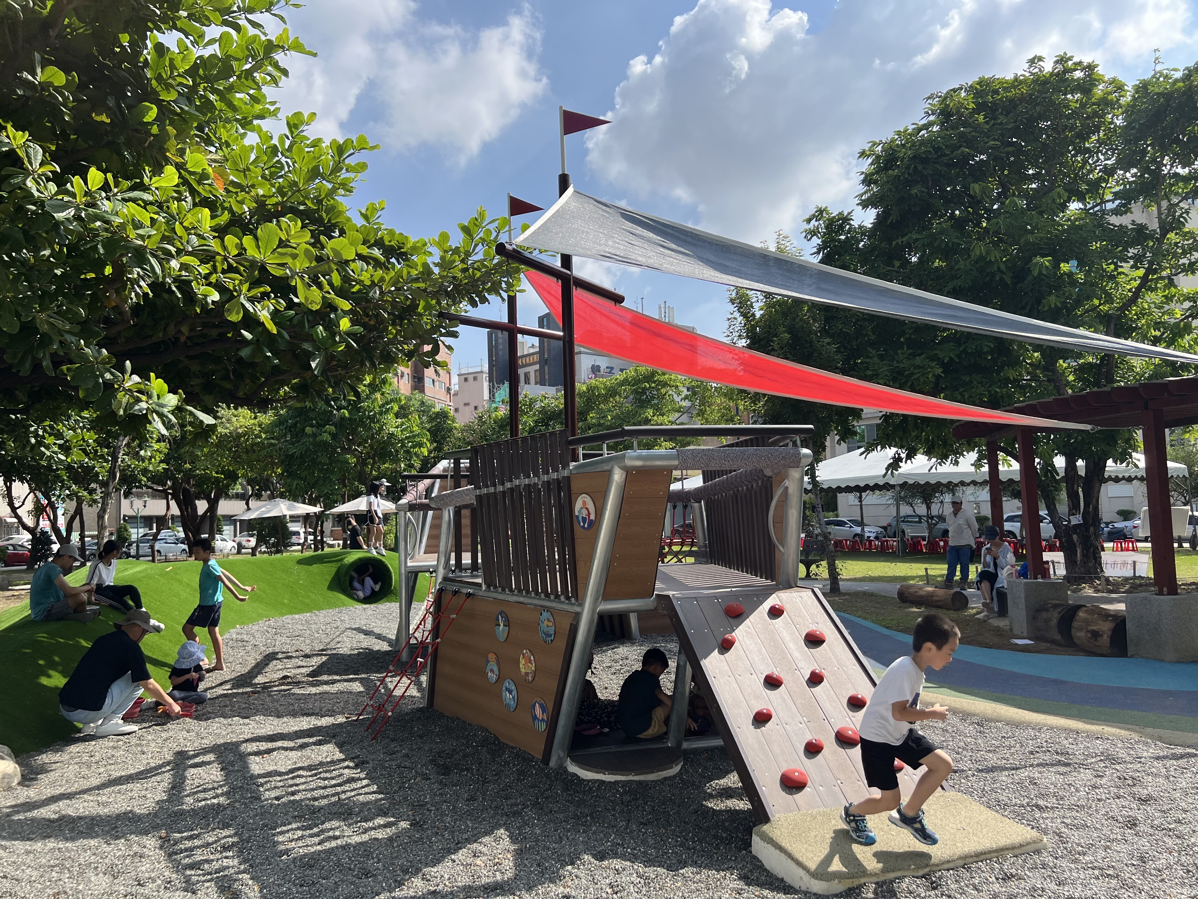 l 遊戲場同時具備冒險氛圍與教育價值,讓孩童在遊戲中認識柴頭港溪、鹽水溪與台江內海的歷史文化。