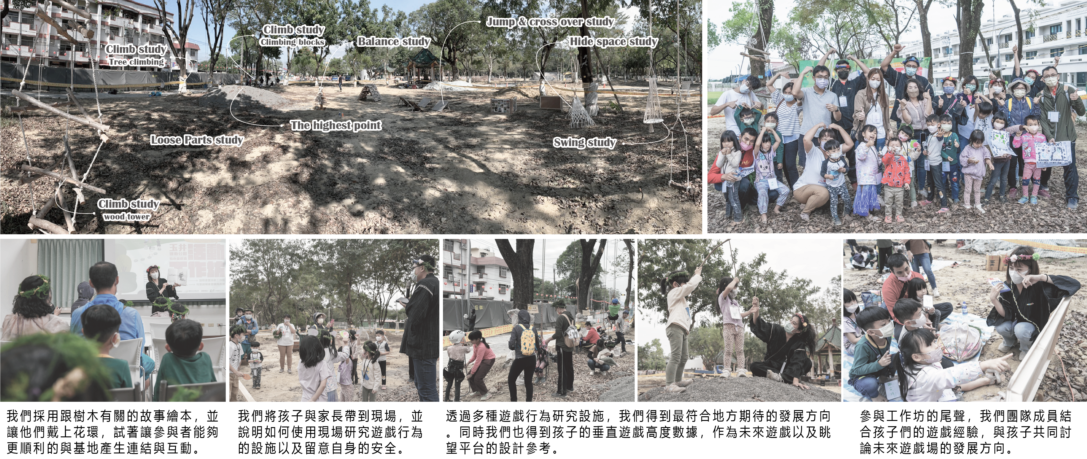 為驗證初步設計發想、選址及使用者預測符合在地需求,團隊透過辦理兒童參與式工作坊、專家學者會議及徵件活動,引導空間未來使用者提供相關意見,並凝聚地方共識以組織後續管理維護之社群,最終確認以「芒果.樹.自然遊戲場」作為基地主題。