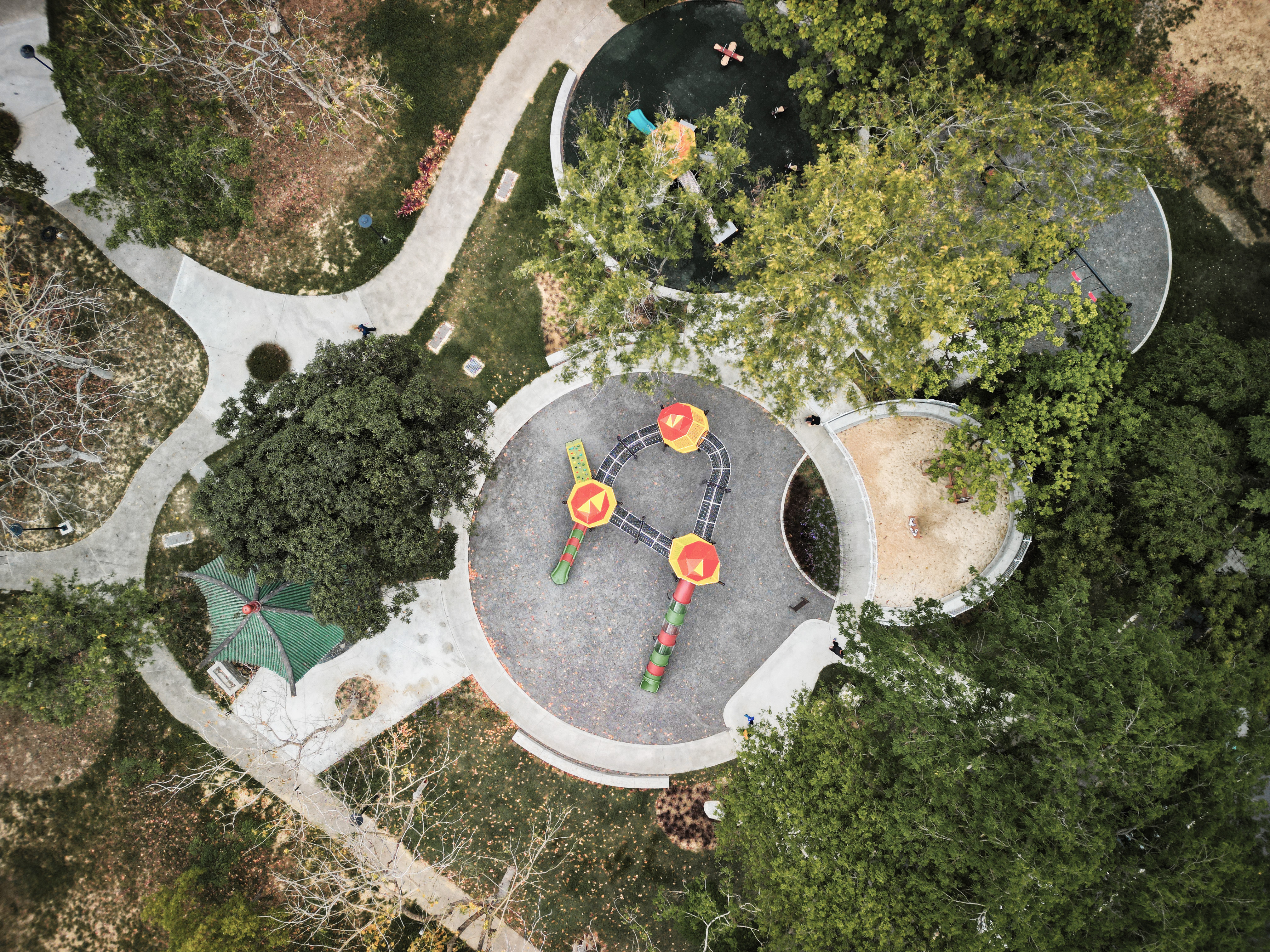 由芒果老樹空間發展設計樣貌,結合孩童遊戲「迴圈」的特性,在有限的經費及空間下,規劃不同的迴圈遊戲路徑,讓孩子穿梭在老樹空間及各區域遊戲場域中,提升遊戲動線的多元性以及空間的豐富性。