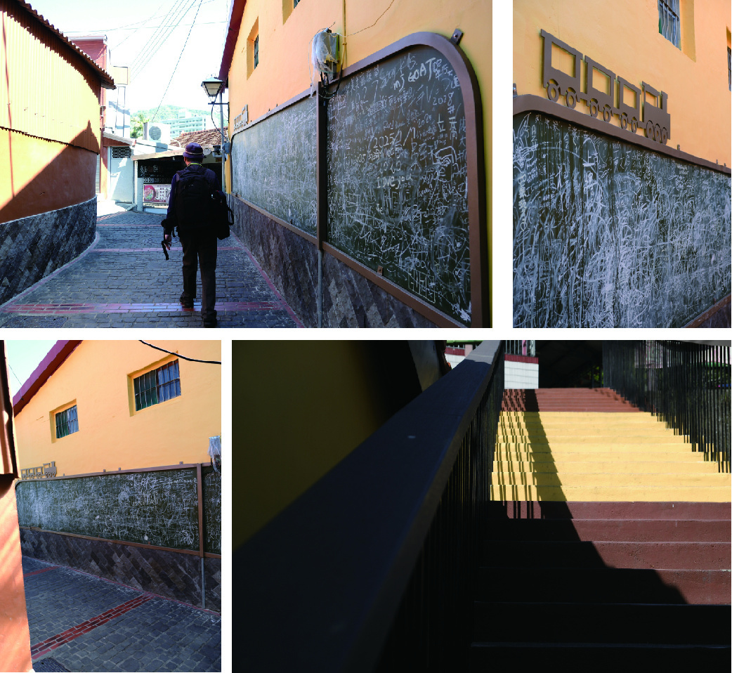 1.既有建物牆面美化,既有黑板漆牆面修補,利用造型鋼板圍塑邊緣,面塗黑板漆,作為提供遊客塗鴉留言的造型黑板,高=140cm,長約770cm。