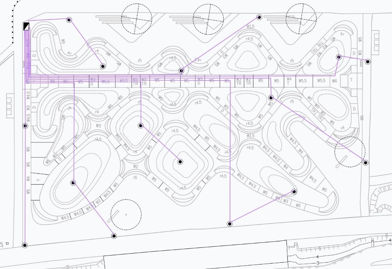 Pump Track場地幾乎沒有任何一處是平坦的,所以設計須藉由底土層、碎石級配層、AC層等各層的來回整理,來滿足賽道滑順的高低起伏及多重曲面的可能性。並在滿足水利法的前提下,運用整地降挖,營造地形起伏,並配合排水設計,以利後續賽道維護及管理。