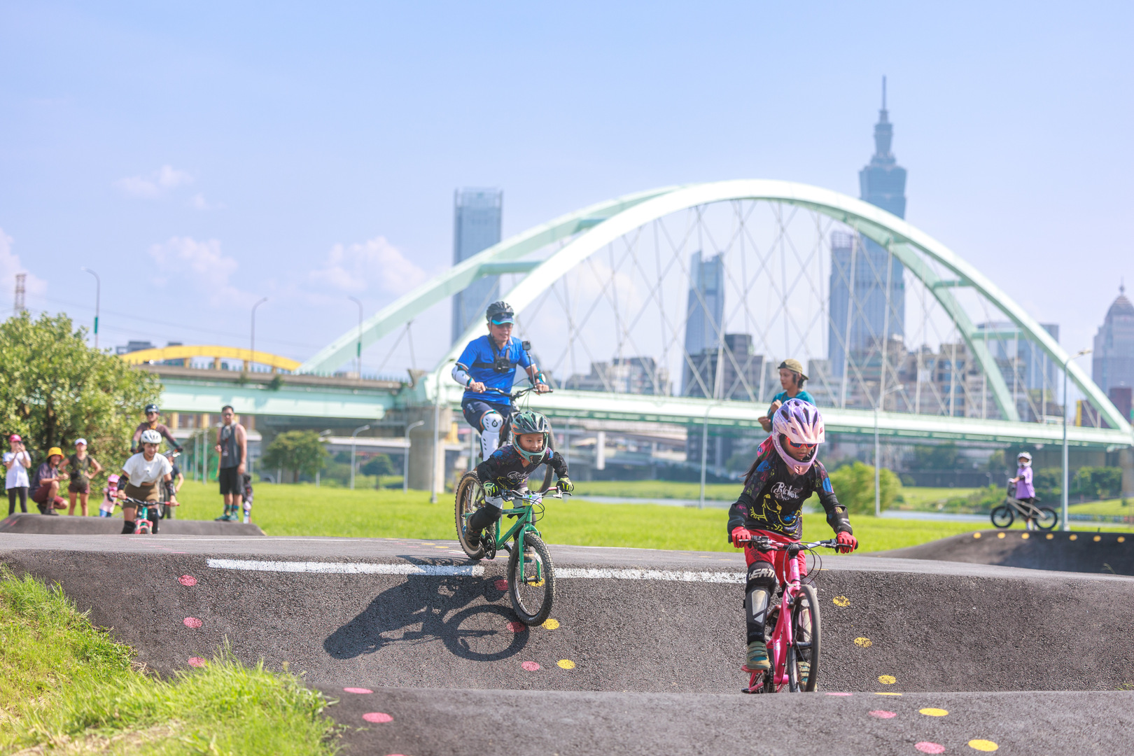 為充分理解這項新興運動以維設計合理性,本公司與全國越野自行車聯盟協會(TWMBA) 合作,進行Pump Track運動以及賽道設計的討論,藉由民間團體力量,掌握民間活動需求,引入新興活動推廣,打造河濱第一座也是面積最大的輪狀車練習場,活化利用水岸空間,創造更美好公眾休憩生活。